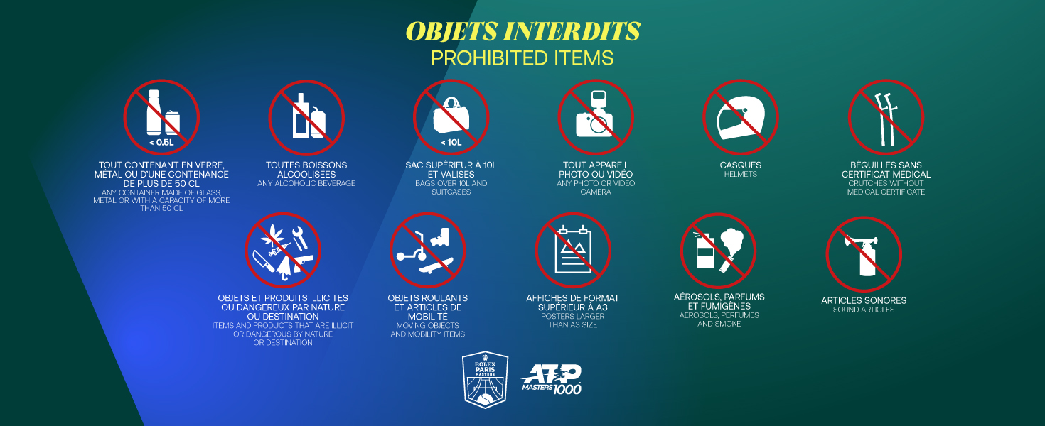 Pour des raisons de sécurité, il est formellement interdit d’introduire dans l’enceinte de Paris La Défense Arena certains objets (voir la liste des objets interdits ci-dessous). Ces objets pourront être laissés en consigne à l'entrée.